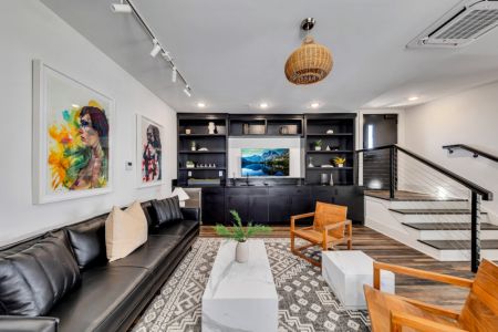 Lofted Mezzanine lounge area on the way up to a Private Rooftop with Views