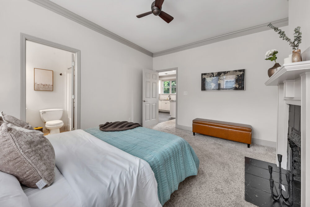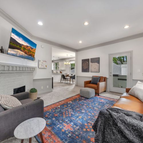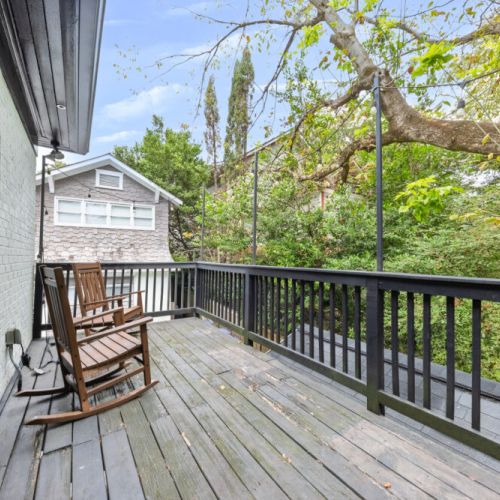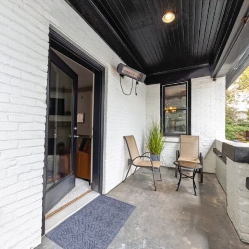 Stylish 1300 sq ft 2BR/2BA upper-level duplex with front and screened-in back porches featuring Polywood furniture. Enjoy a smart layout, Crate & Barrel kitchen essentials, top-grain leather seating, high-speed Google Fiber, ceiling fans in both bedrooms, and smart TVs. The king suite opens to a peaceful porch and ensuite bath; the queen bedroom has a private bath and decorative fireplace. Walk 0.8 mi to the Atlanta BeltLine and enjoy top restaurants, shops, and culture nearby.