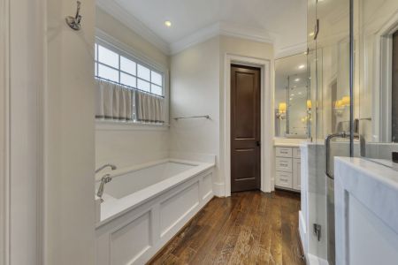 Oversized primary suite with spa-like ensuite bathroom and soaking tub