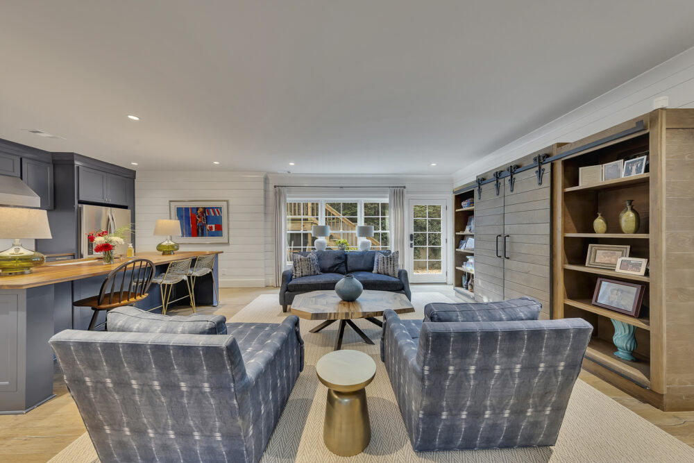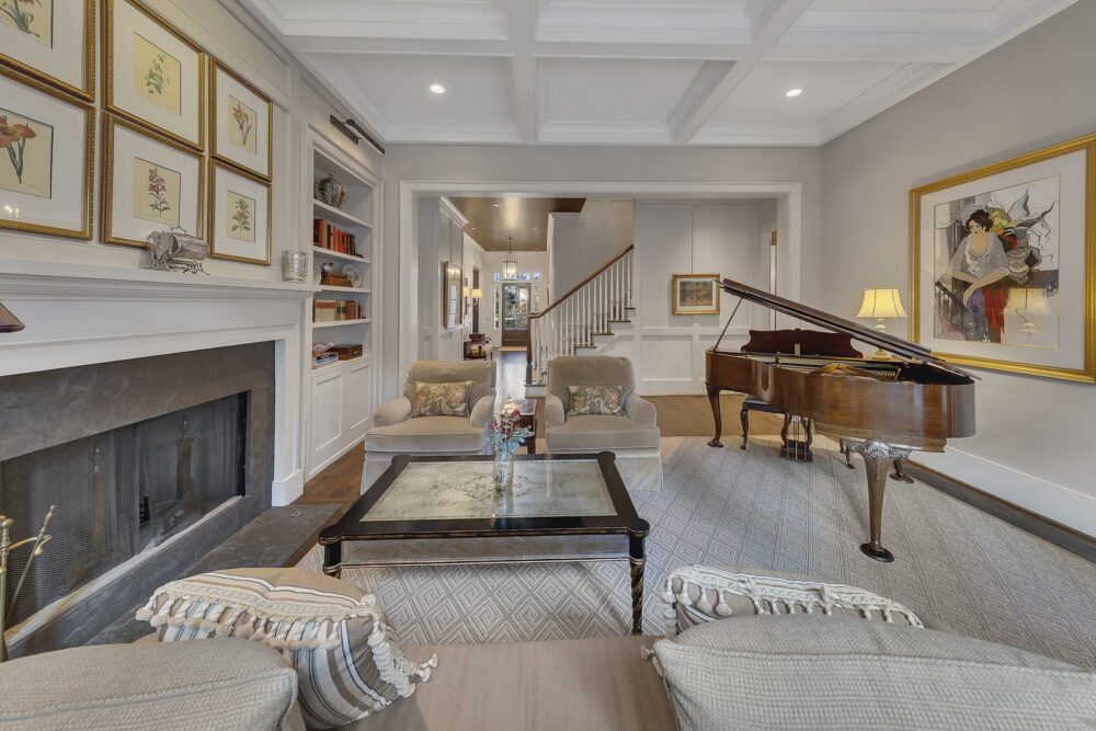 Multiple living rooms with fireplaces and cozy seating