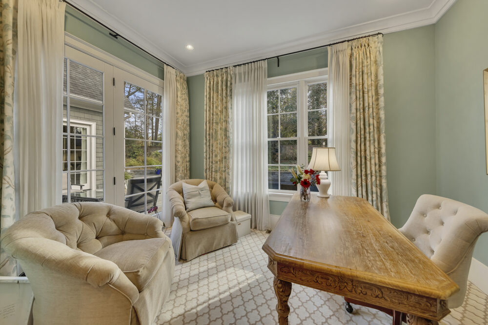 Offers direct access to the pool and patio area, plus a den with grand piano, formal living room, chef’s kitchen, dedicated office, and the primary master suite. With the main bedroom and primary amenities located on this level, minimal stairs are required, making it more accessible for guests with mobility considerations.