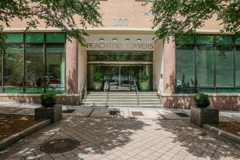 Located in the historic Peachtree Towers, this beautifully updated condo offers modern comfort in one of the city’s most iconic buildings. Known for its superior insulation, the building provides an exceptionally quiet stay—you’ll almost never hear your neighbors, despite being in the heart of downtown.