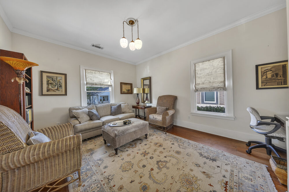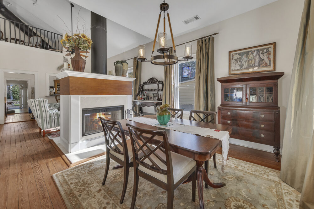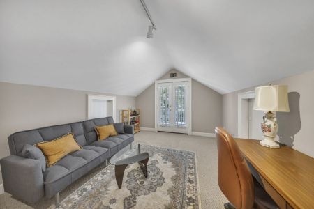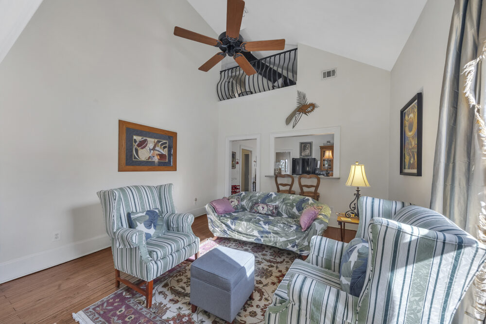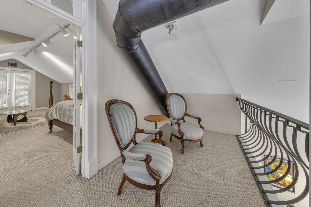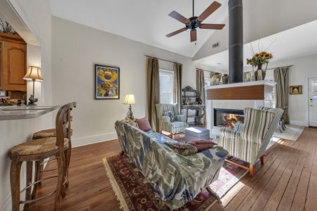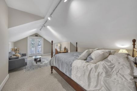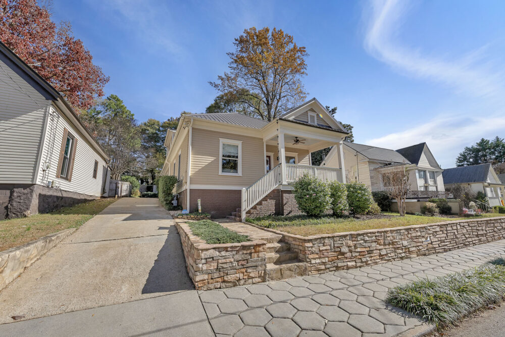 This lovely, fully furnished 3 Bedroom/3 Bath, 2,600 sq. ft. craftsman bungalow home is nestled in the West Midtown, Historic Howell Station neighborhood. The home blends Southern charm with European style. Inside, the open-concept main level is bathed in natural sunlight and features warm hardwood floors, a spacious living area with a ceiling fan and fireplace, a modern kitchen, and a new washer and dryer. Great character, 10’ ceilings with an 18’ cathedral ceiling in the living area. The home includes 4 beds plus a futon and sleeps 7 adults comfortably. The upper-level loft is an upscale master suite including, 700 sq. ft. of living area; a sitting area at the landing, sitting area with coffee table and desk, sleeping area, queen size bed plus a very comfy fold out bed, French doors leading to the bedroom, and French doors leading to a balcony with comfy seating overlooking the lovely back yard patio. The front porch provides comfortable seating for relaxation, along with a ceiling fan and lamp. The back patio provides privacy, including a hammock, sofa, coffee table, and dining room table. Off-street parking with a 2-car carport.