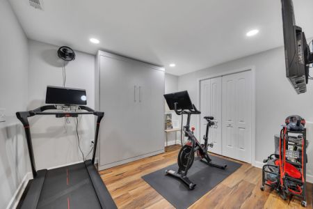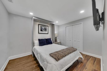Third Bedroom (Finished Basement): Queen Murphy bed with ensuite bath and a fitness area featuring a treadmill and Peloton for your workouts.