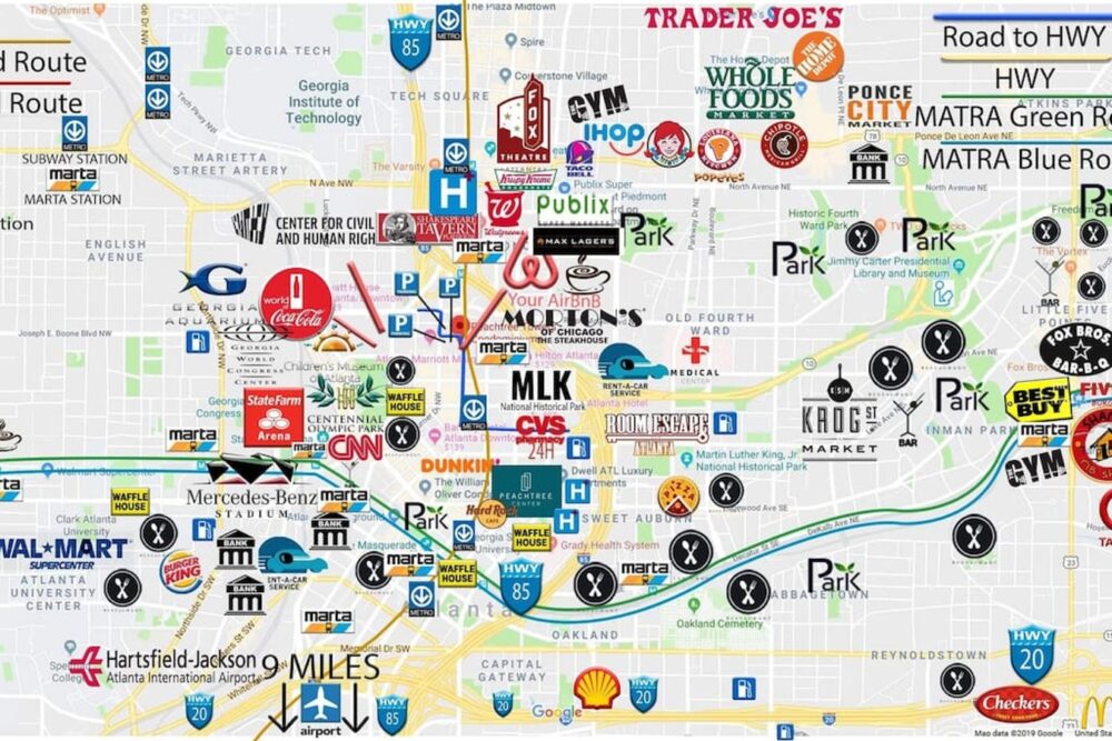 Getting around couldn’t be easier. Peachtree Center MARTA Station is just one block away, providing a quick 15-minute train ride directly to Hartsfield-Jackson Atlanta International Airport. Rideshare services like Uber and Lyft are always close by and convenient. Plus, nearly all major downtown attractions are within easy walking distance from the property.