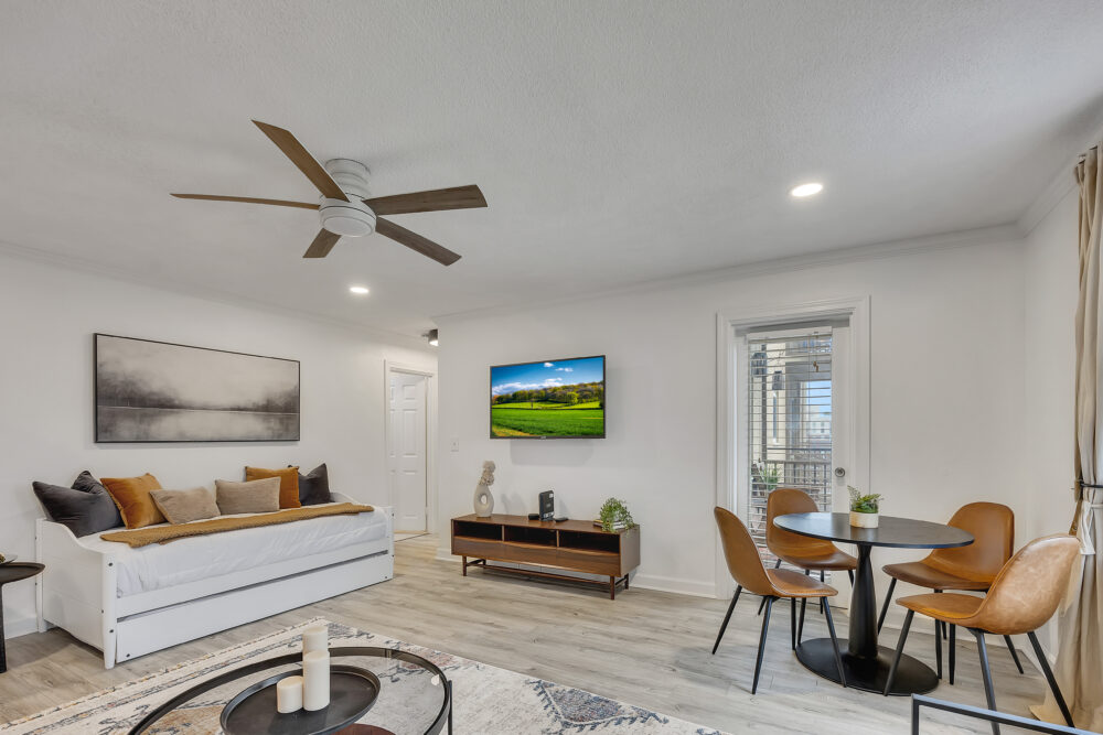 Enjoy skyline views and modern comfort at this 19th-floor condo in the historic, quiet Peachtree Towers. Featuring a king bed, screened-in balcony, and walkable access to Hyatt Regency, AmericasMart, Georgia Aquarium, World of Coca-Cola, and Mercedes-Benz Stadium. Whether for business or leisure, “The Peachtree Perch” is your ideal downtown retreat.