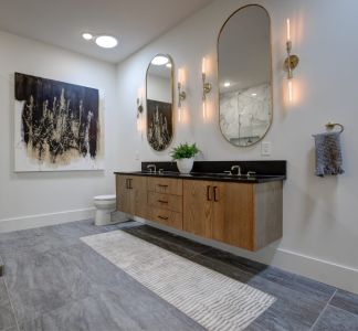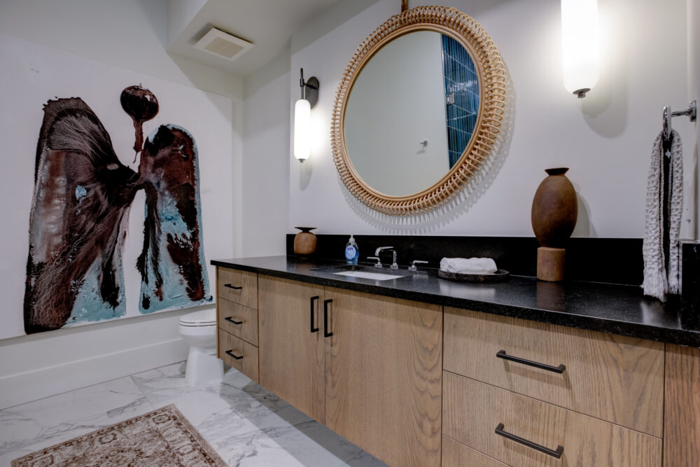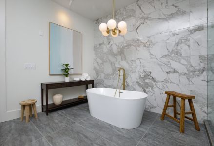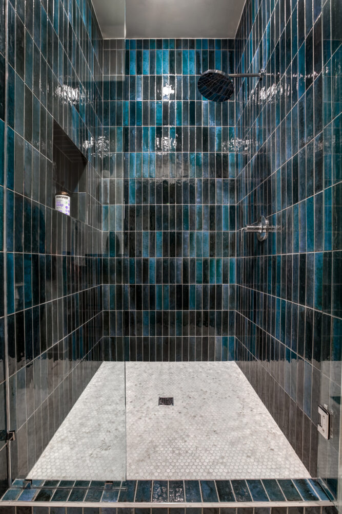 Custom brick and tile interior wall accents, designer lighting, and striking tiles