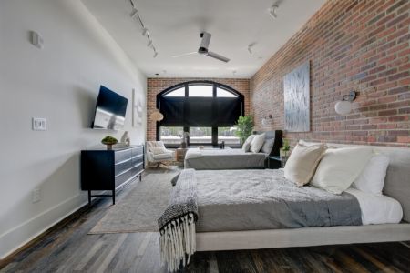 Experience downtown Atlanta luxury in this sophisticated loft-style condo, designed to combine historic charm with modern elegance. Perfect for families or groups, the space offers two enormous en-suite bedrooms plus a bonus semi-private room with an attached half bath (no door).