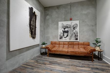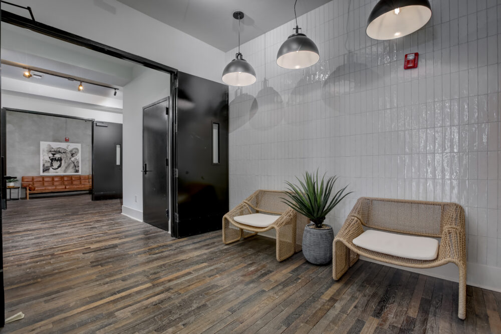 The Otis is more than just another Atlanta building. Located in the neighborhoods main entertainment corridor, It’s a new living space that offers a mix of history and modern style, all thanks to the special touch of one of the community’s former residents — designer turned television star Ty Pennington. Pennington, an ATL native and graduate of Atlanta College of Art, is best known for his work on the original Trading Spaces and ABC’s Extreme Makeover: Home Edition. Almost every piece of artwork in The Otis – not only in the spaces but also inside the gallery (which is the common areas) – is custom work by Ty Pennington. The Otis is named for an elevator manufacturer that once operated on the site. The preserved façade still carries the company’s logo.